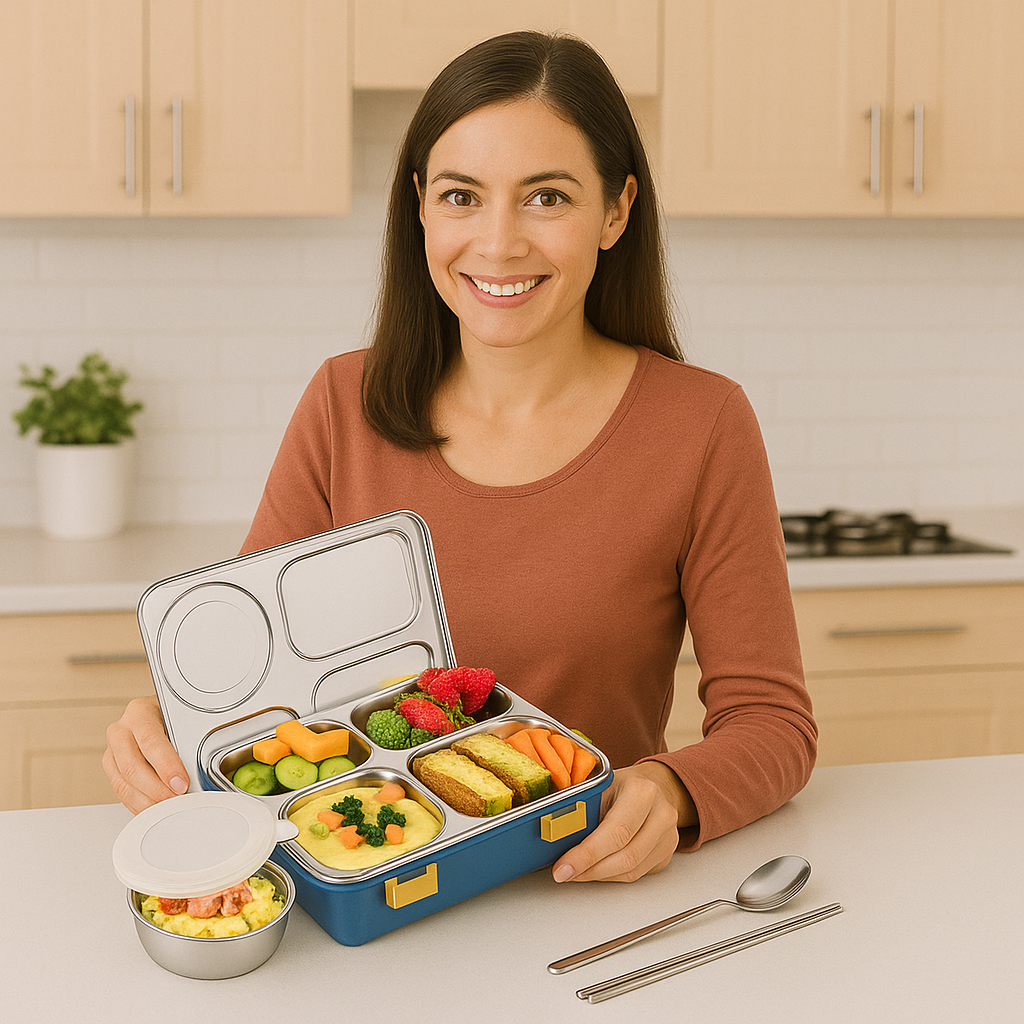 DNkitch 4 - Compartment Stainless Steel Lunch Box for Adults & Kids Ideal for School, Office, Picnic (1000ml)