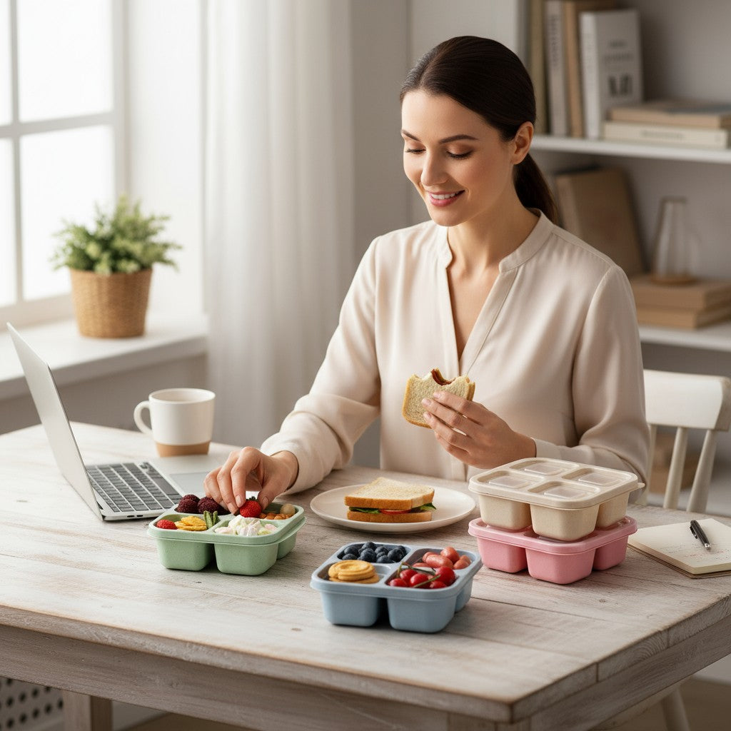4 Pack Snack Containers, Divided Bento Snack Box, Kids Adults , 4 Compartments Meal Lunch Containers for School Work Travel