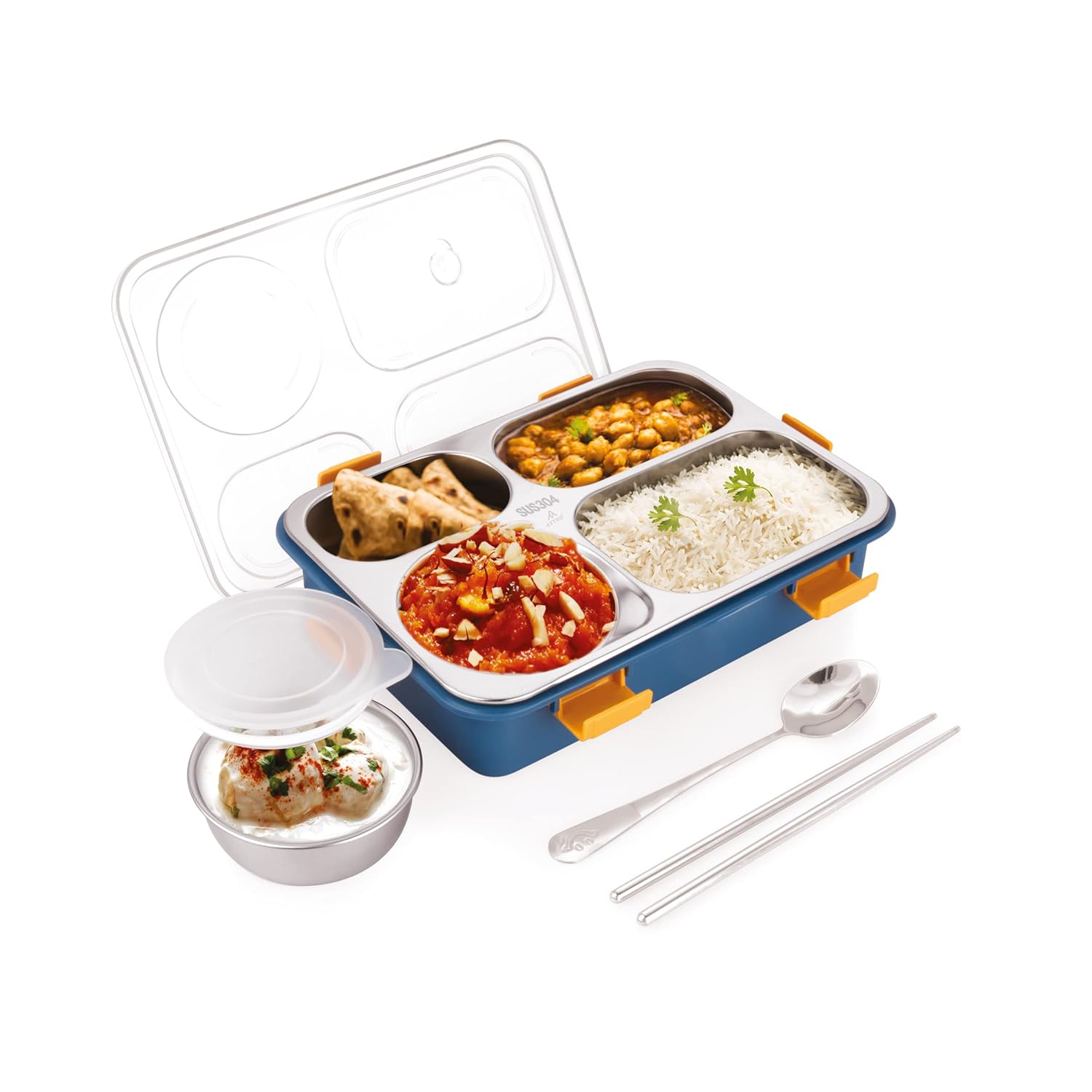 DNkitch 4 - Compartment Stainless Steel Lunch Box for Adults & Kids Ideal for School, Office, Picnic (1000ml)